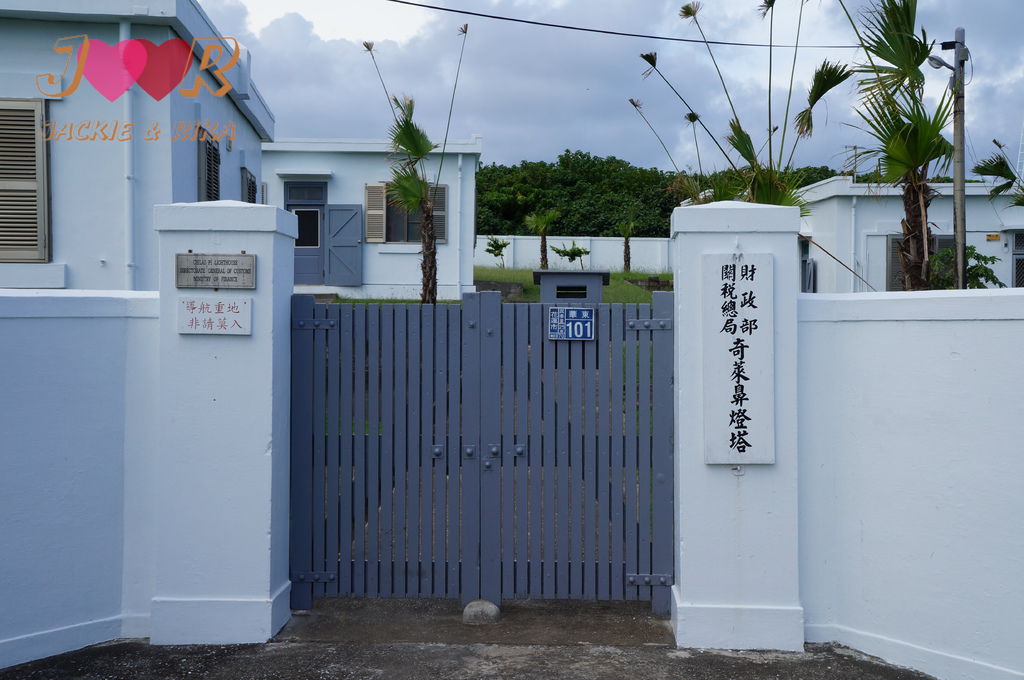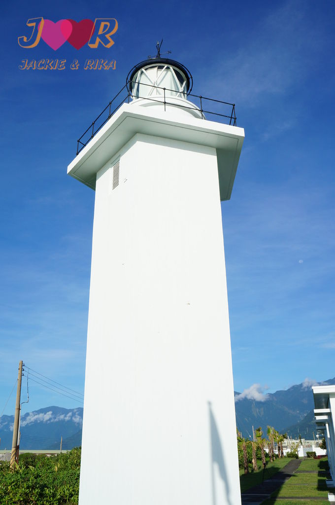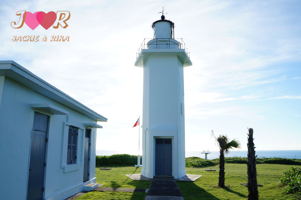 奇萊鼻燈塔也是全台燈塔中唯一有土地公廟設置的燈塔(照片中左紅色建築物為土地公廟)